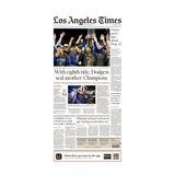 Order a framed or unframed page print of the L.A. Times 11/1/24 main news cover celebrating the Dodgers winning the World Series against the Yankees.