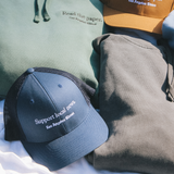 Our best-selling slogan hats are back in a new style just in time for the holidays. With front embroidery and a mesh back, these trucker hats are the perfect way to add some color into your wardrobe this season.